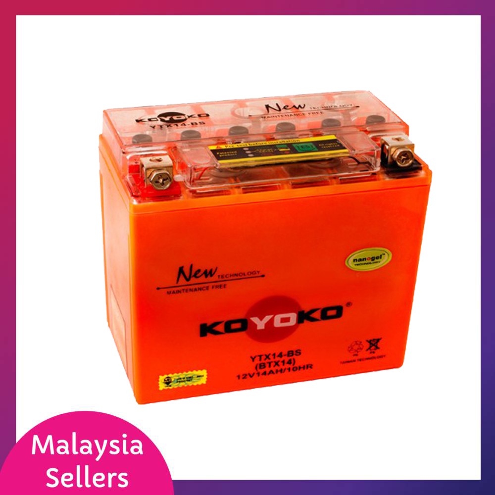 Ytx14 Bs Koyoko Motorcycle Battery For Honda Cbr 1000xx Shadow Xrv750 Nv750 Trx350 St1100 Vtx1300c Vt1100 Yamaha Trx850 Shopee Malaysia